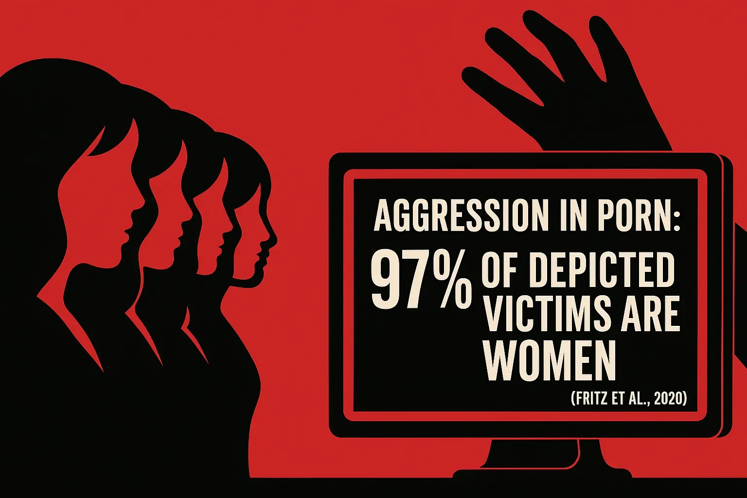Research has highlighted disturbing patterns in mainstream pornography. A study on mainstream pornographic videos found that 97% of the victims of violence or aggression depicted in pornography were women, showcasing the normalisation of abuse and aggression (Fritz et al, 2020). Also according to a 2019 study published in the Journal of Trafficking, Organised Crime, and Security, "The consumption of pornography has normalised the objectification of women, often desensitising viewers to the harm caused by exploitation" (Doe & Smith, 2019).